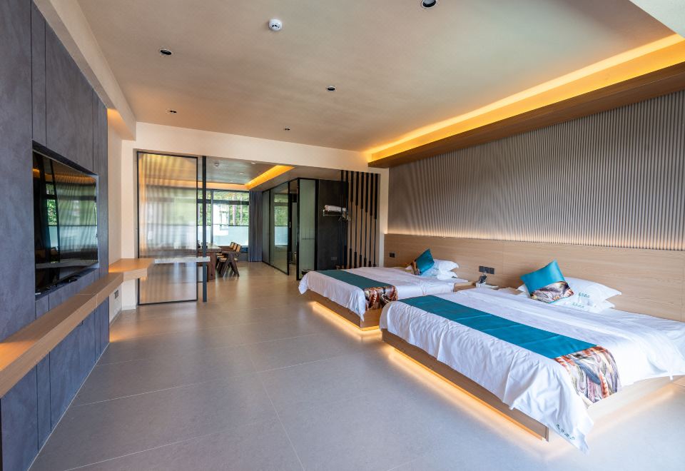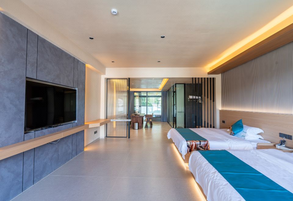 轻奢双床房(房间带泡池+实木茶桌)