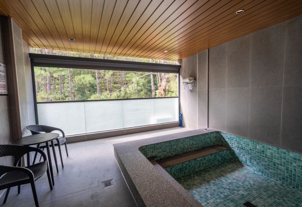 日式榻榻米三床(房间带泡池+实木茶桌)